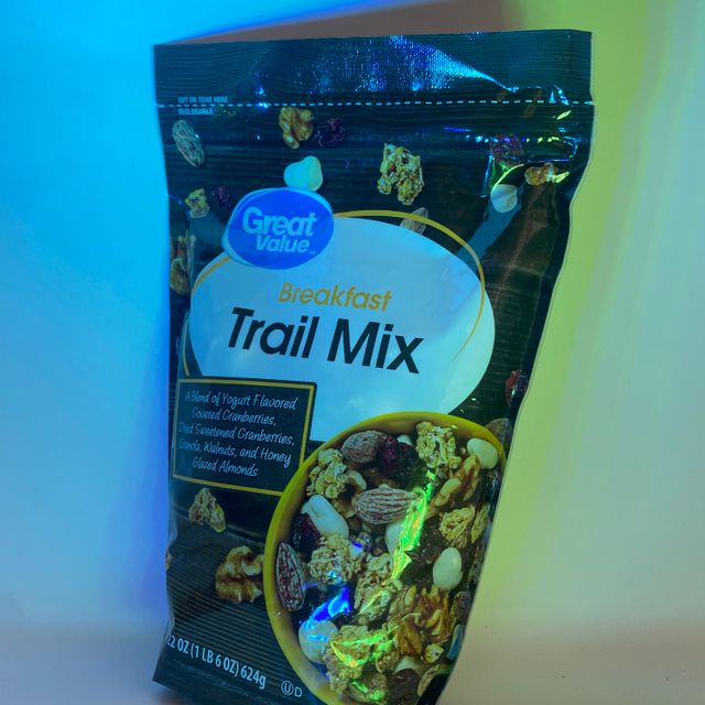 Una mezcla de arándanos cubiertos con sabor a yogurt, arándanos secos azucarados, granola, nueces y almendras glaseadas con miel.